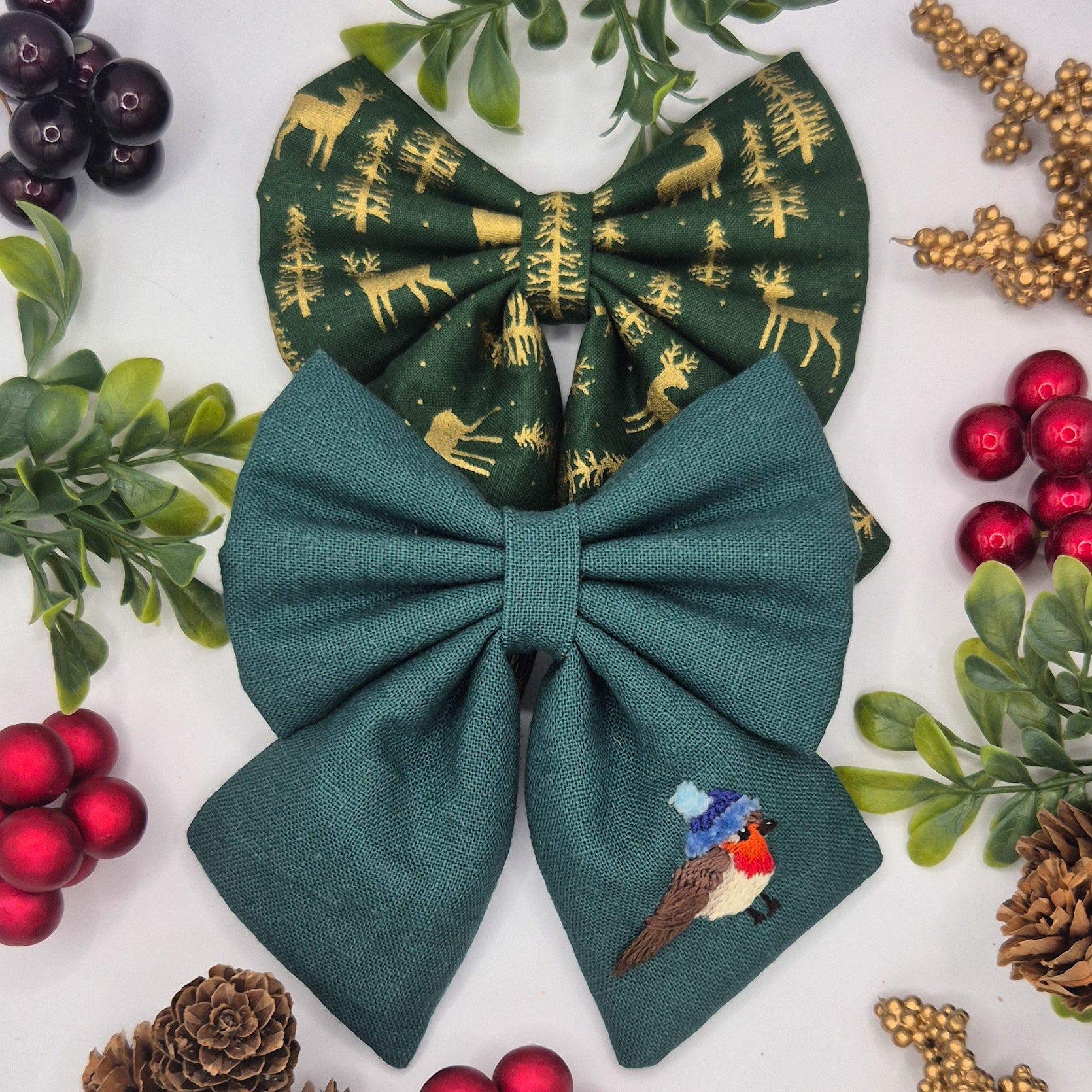 *Please note all bows are lined, giving them structure and shape. All sizes are approximate and pattern placement may vary as each bow is handmade. This bow is made using a small bell so may be less practical for everyday walks etc.